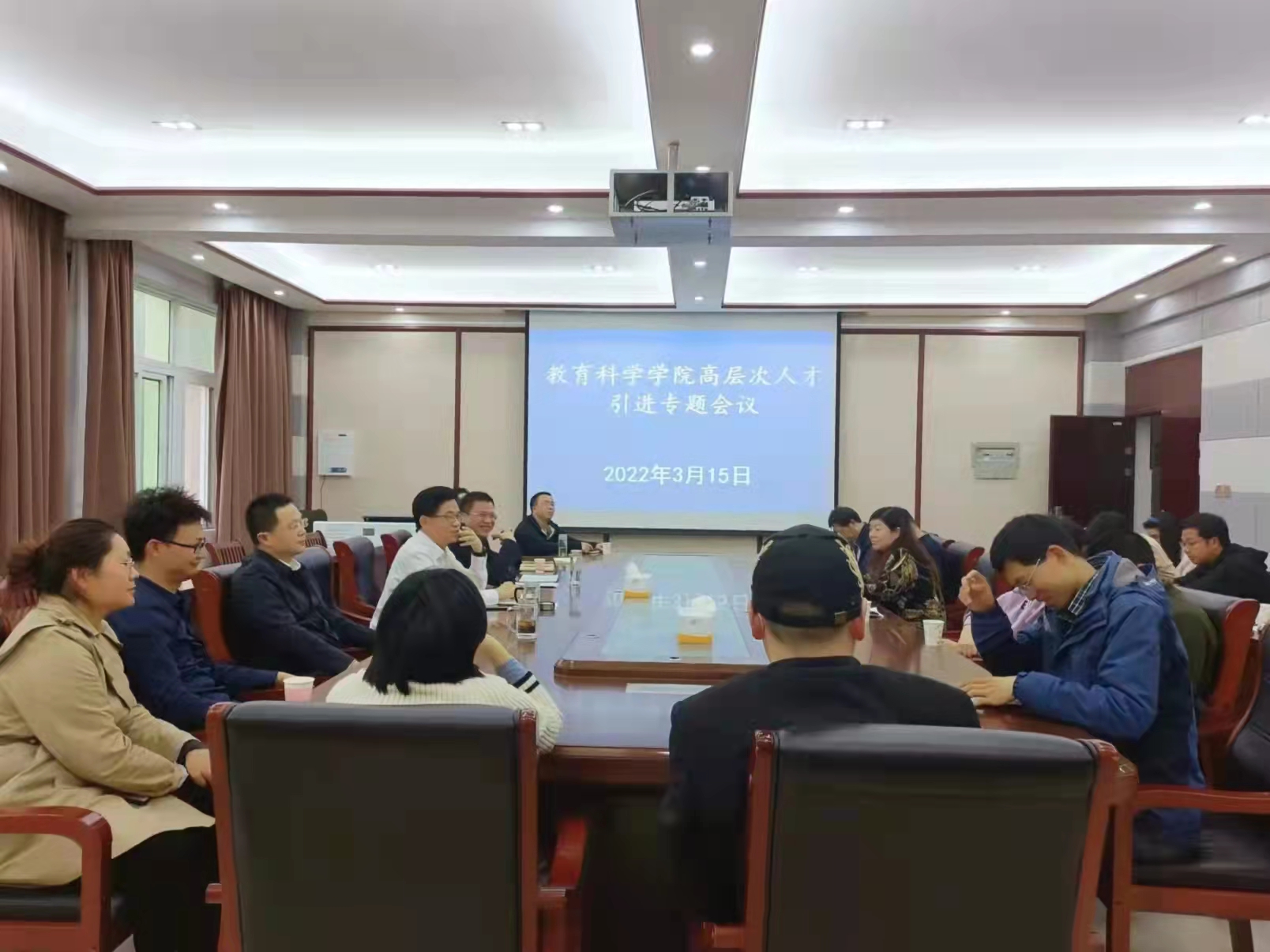 时间:2022-03-16 12:20:28 来源:教科院新闻部 作者:马玉娇 刘至涵 阅读: 次为扎实做好学院人才引进工作,3月15日下午,tyc7111cc太阳成集团高层次人才引进专题会议在教科楼402会议室召开。院党委书记房加帅,院长何安明,党委副书记董银银,副院长郭勇、孙天义以及教研室主任和博士教师出席会议。