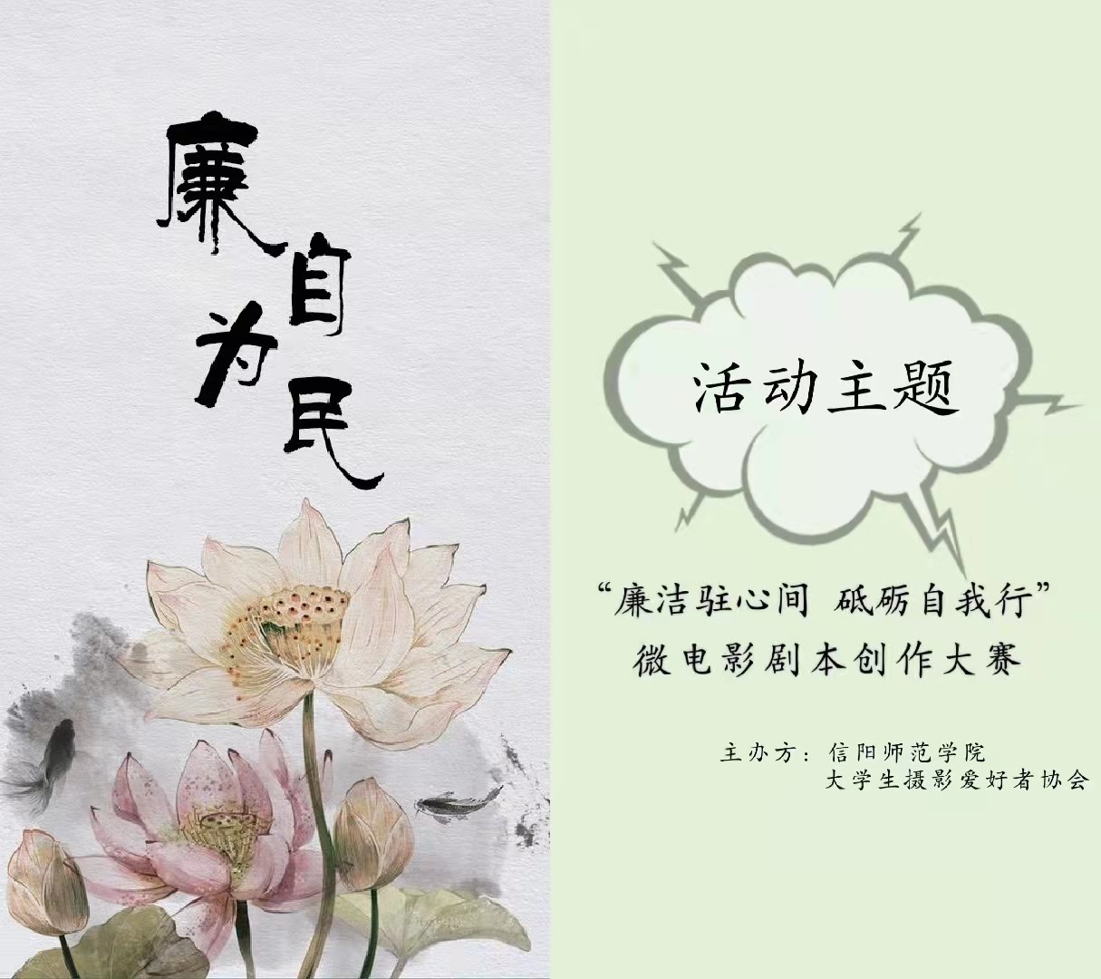 时间:2022-05-01 12:57:07 来源:教科院新闻部 作者:周媛媛 齐家乐 阅读: 次为迎接党的二十大胜利召开,大力弘扬廉洁清风,营造以廉为荣的良好风尚。2022年4月13日至4月30日,太阳成tyc7111cc大学生摄影爱好者协会特举办“廉洁驻心间,砥砺自我行”微电影剧本大赛暨河南省“喜迎二十大,清风满中原”短视频校级选拔赛剧本征集活动。