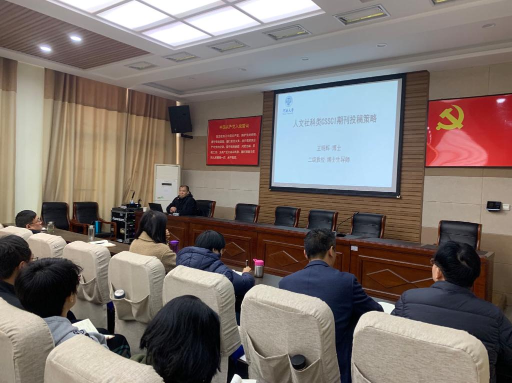 时间:2023-12-03 12:12:04 来源: 作者: 阅读: 次12月3日上午,应tyc7111cc太阳成集团邀请,河南大学王明辉教授在教科楼301报告厅作题为“人文社科类CSSCI期刊投稿策略”的学术报告。报告会由该院院长何安明主持,教科院全体教师及部分研究生聆听了报告。