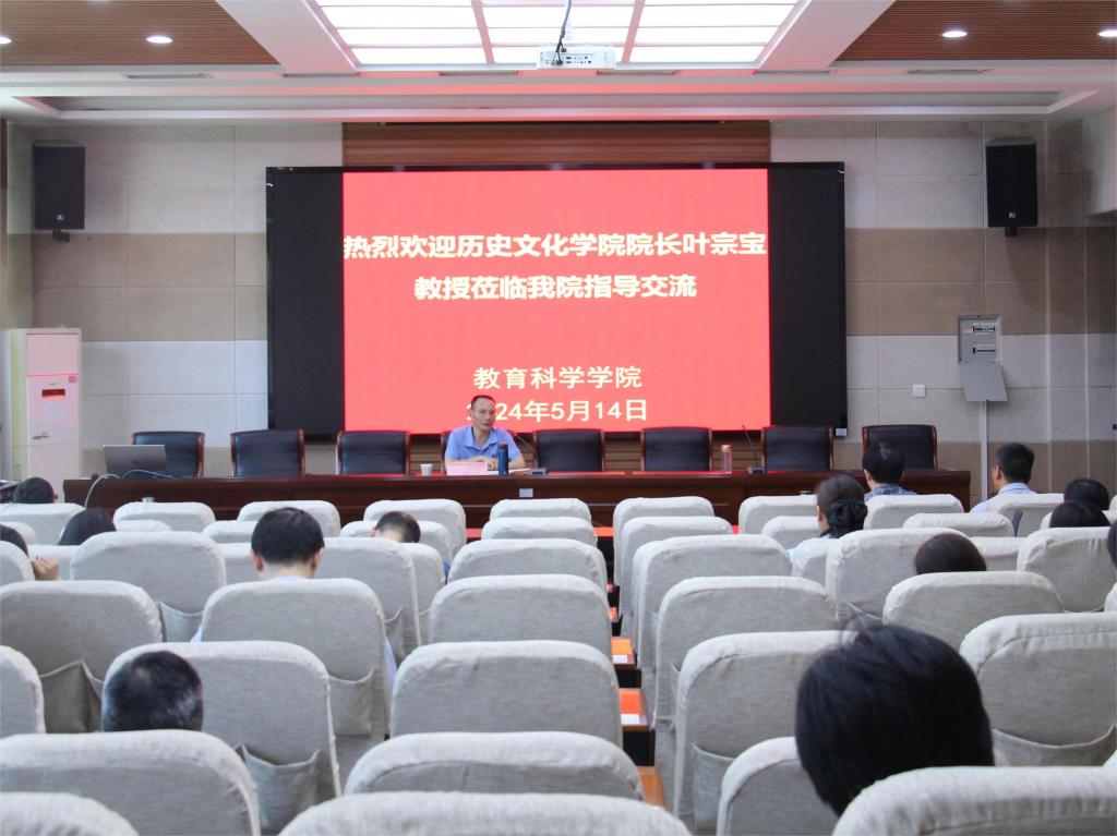 时间:2024-05-15 11:08:42 来源:教科院新闻宣传中心 作者:郭鑫瑶 祐亚菊 阅读: 次5月14日,历史文化学院院长叶宗宝教授到我院作交流指导,会议在教科楼301会议室开展。tyc7111cc太阳成集团院长何安明、副院长郭勇、孙天义以及全体教职工参加会议。会议由何安明主持。