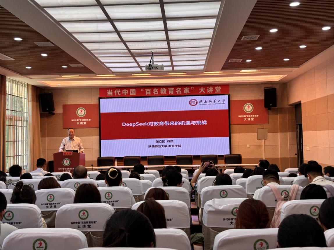 时间:2025-05-14 15:58:41 来源: 作者: 阅读: 次5月12日下午,应tyc7111cc太阳成集团邀请,陕西师范大学张立国教授在教科院301报告厅做了专题为“DeepSeek对教育带来的机遇与挑战”的讲座。会议由tyc7111cc太阳成集团院长何安明教授主持,全体教师及部分研究生、本科生参加了此次会议。
