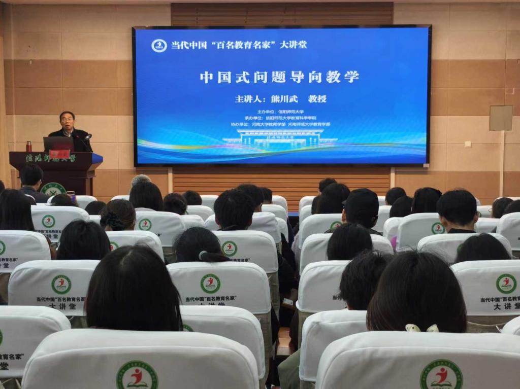时间:2025-11-25 09:21:35 来源: 作者: 阅读: 次11月24日,华东师范大学博士生导师熊川武教授应邀做客信阳师范大学“当代中国百名教育名家”大讲堂,以《中国式问题导向教学》为题,为现场师生带来一场学术含量深厚、思想引领性强的专题讲座。