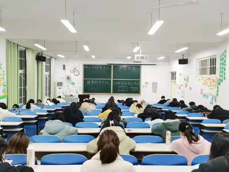 本次考试内容以《2021年学生工作规章制度专刊》为基础,通过填空、选择、简答、案例分析等题型考察同学们对学校管理规定、违纪处分、综合测评方法、住宿管理规定、宗教问题管理办法、学分制学籍管理办法等的学习了解情况,并设置教科楼201、202等教室为考场,采取实名制线上学习通闭卷形式开展。考试前期,各班根据学校相关要求提前组织同学们学习相关知识,积极备考;考试开始前30分钟,同学们佩戴好口罩陆续有序进场;考试过程中,同学们在规定时间内通过学习通APP进行线上作答,自觉遵守考场纪律,认真对待此次考试。每一位同学都仔细审题,认真答卷,力求取得更高分数,用自身实际行动践行校规校纪。整场考试衔接紧凑、秩序井然,所有工作人员尽职尽责,顺利完成了此次考试工作。