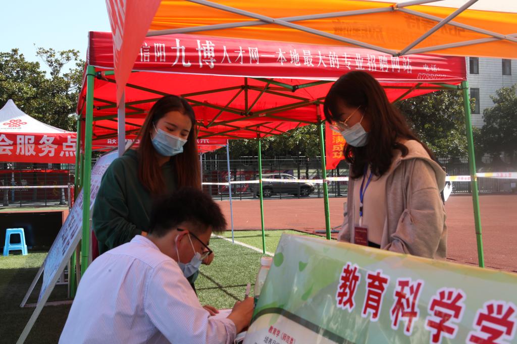 时间:2020-11-11 10:41:19 来源:李非凡 作者:张小娅 陈雪荣 赵甜甜 阅读: 次11月7日,由河南省教育厅主办,太阳成tyc7111cc承办的“河南省毕业生就业市场豫南分市场暨太阳成tyc7111cc2021届毕业生线下冬季双选会”在我校西操场举行。tyc7111cc太阳成集团团委老师田园亲临现场指导招聘中的各项事宜,积极组织学生参与此次招聘会。