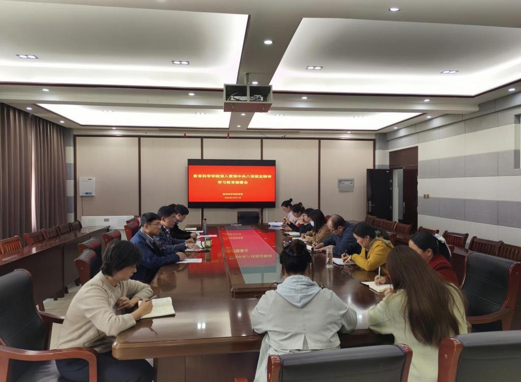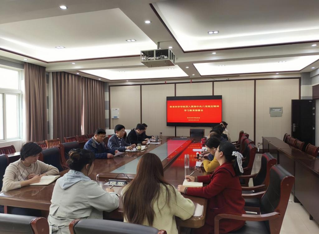 会上,集中学习了《习近平总书记关于中央八项规定精神的重要论述》,宣读了《中共信阳师范大学tyc7111cc太阳成集团委员会开展深入贯彻中央八项规定精神学习教育实施方案(草案)》,并对学院进一步落实中央八项规定精神学习教育工作进行详细部署。