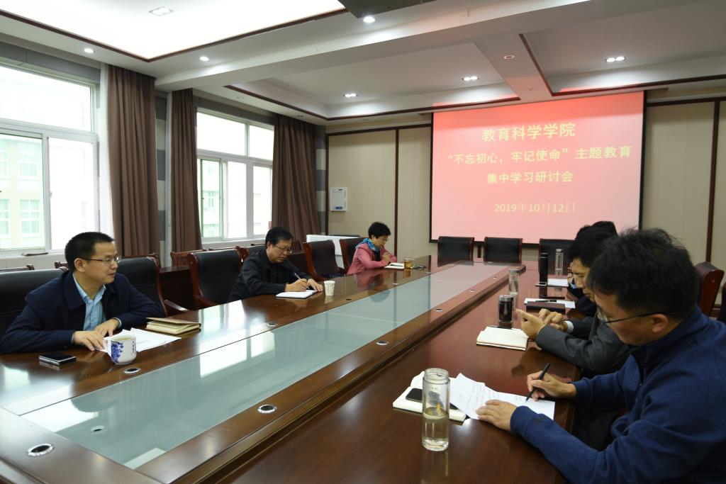 根据学习教育、调查研究、检视问题、整改落实有机融合的原则,教科院在“不忘初心、牢记使命”主题教育活动中采取自学和集中学习相结合,学习和调查研究相结合的方式,边学边自查问题,边学边拿出举措。本次集中学习研讨会的主要议题是在自学和集中学习的基础上,经过调查研究,于上次党委会研究制定的。会议研讨议题有两个,一是如何发挥好班子的凝聚力,同心协力搞好学院发展,二是班子成员根据自己分管的工作,查找影响学院发展的瓶颈,并探讨突破对策。
