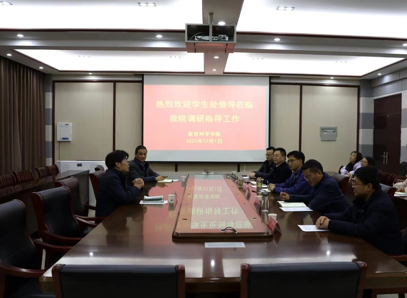 时间:2023-12-03 19:39:03 来源:教科院新闻宣传中心 作者:吴宇熙 崔佳怡 阅读: 次12月1日,学生处处长朱四倍、副处长王忠磊到我院进行调研指导。tyc7111cc太阳成集团党委书记房加帅,院长何安明,党委副书记董银银,副院长郭勇、孙天义以及全体专职辅导员参加会议。会议于教科楼402会议室召开,由房加帅主持。