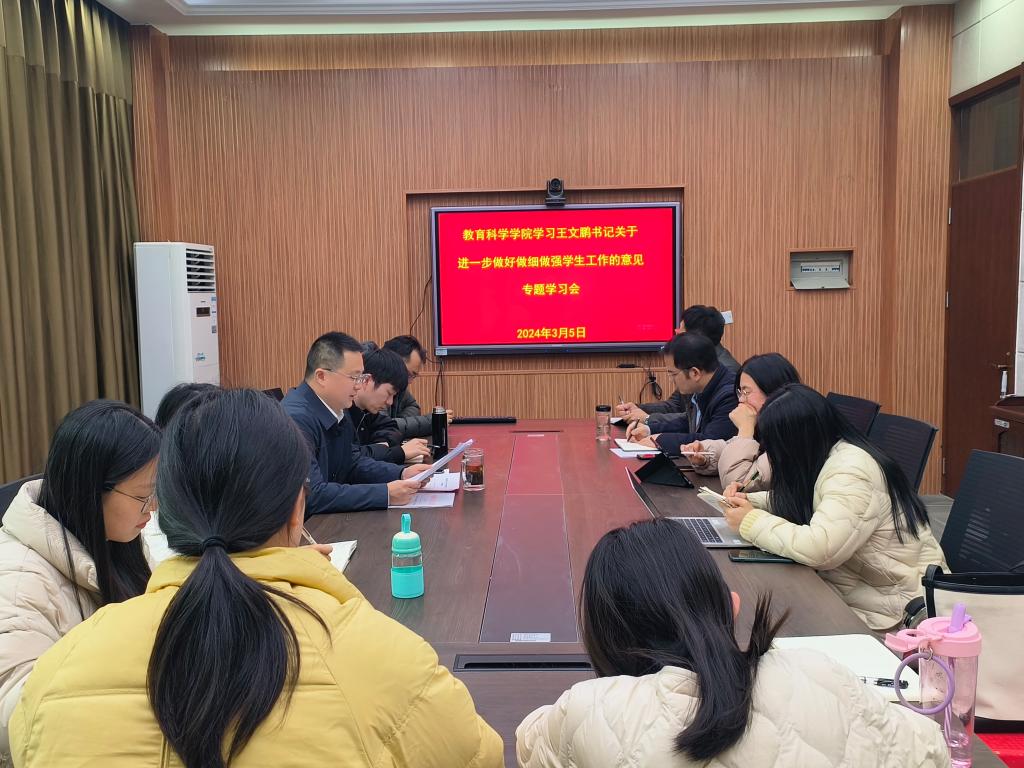 会上,董银银首先传达了学校新学期学生工作会的会议精神,全体专兼职辅导员共同学习了校党委书记王文鹏《关于进一步做好做细做强学生工作的意见》。随后,董银银全面总结了2023年学院学生工作,并结合学校2024年学生工作要求,对新学期学院学生工作重点任务进行部署:一是要把握新形势,转换思路打开格局,创新工作方法;二是要以学生为中心,深入宿舍、食堂等,增强与学生的沟通交流,在工作中协调好学生教育管理与学生服务之间的关系;三是要多措并举加强学风建设,严抓学生上课迟到、玩手机等现象,创建优良学风;四是要增强学生工作的实效性,主动担当作为,坚守安全稳定底线。会后,我院姜金伟博士就班主任与学生沟通问题为全体班主任做辅导报告。