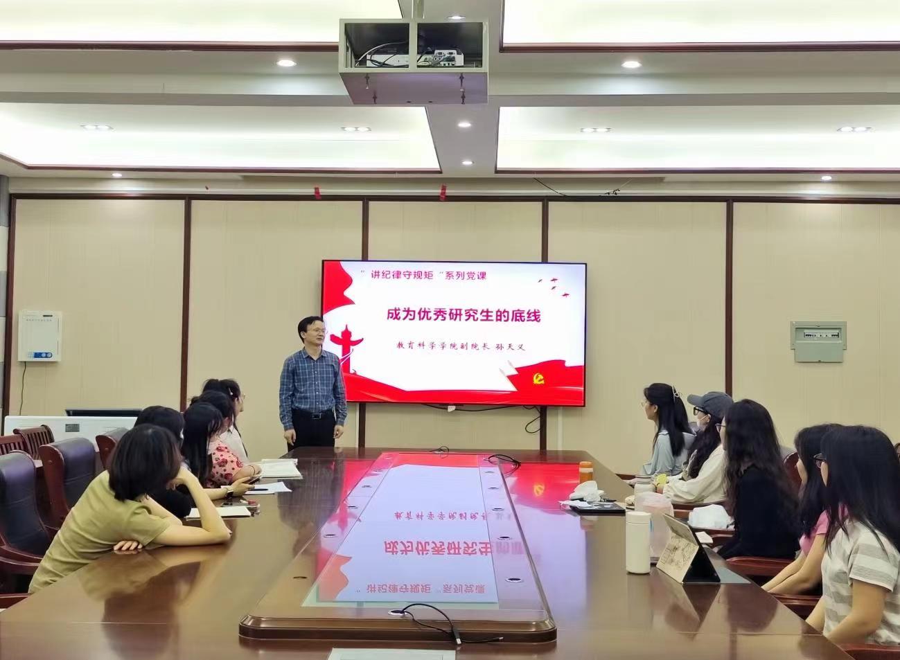 tyc7111cc太阳成集团副院长孙天义以《成为优秀研究生的底线》为题,结合负面清单和典型案例,强调研究生党员要增强党性修养、保持优良党风、严守党的纪律、推进自我革命,处理好公与私、义与利、纪与情、道与术的关系,明大德、守公德、严私德、传美德,模范遵守法律法规、校规校纪、科研伦理和学术道德。