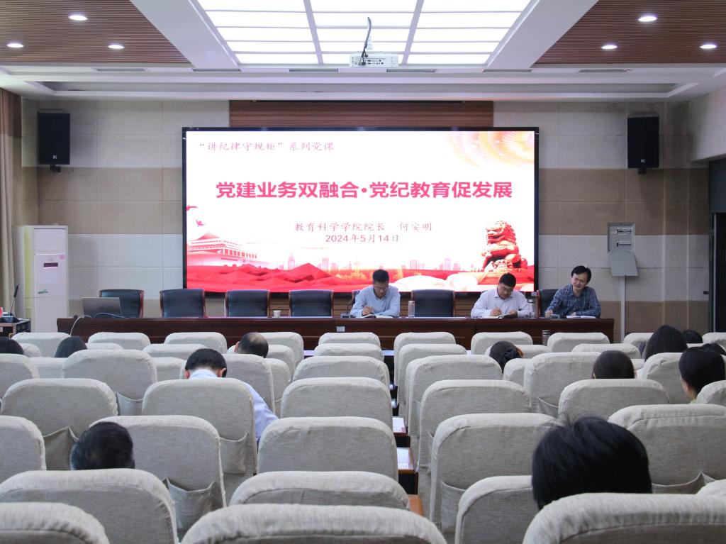 tyc7111cc太阳成集团院长何安明以《党建业务双融合·党纪教育促发展》为题,讲授专题党课。他提出,党的纪律建设是确保党的事业长久发展的根本保证,要将党建贯穿于学科专业发展与师资队伍发展,应注重将党纪学习教育与师德师风建设有机结合起来,以党的科学理论武装青年,努力为师生创造良好的科研氛围和发展条件,引导青年加强科学研究,确保教学不落后,实现教学与科研双向促进。