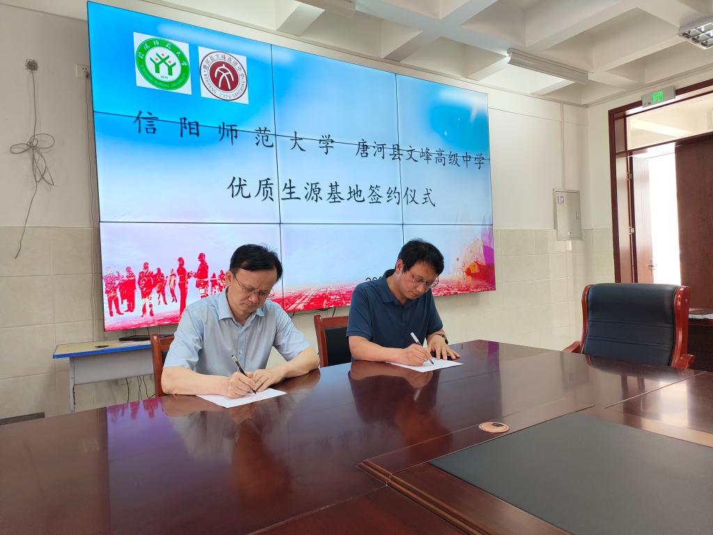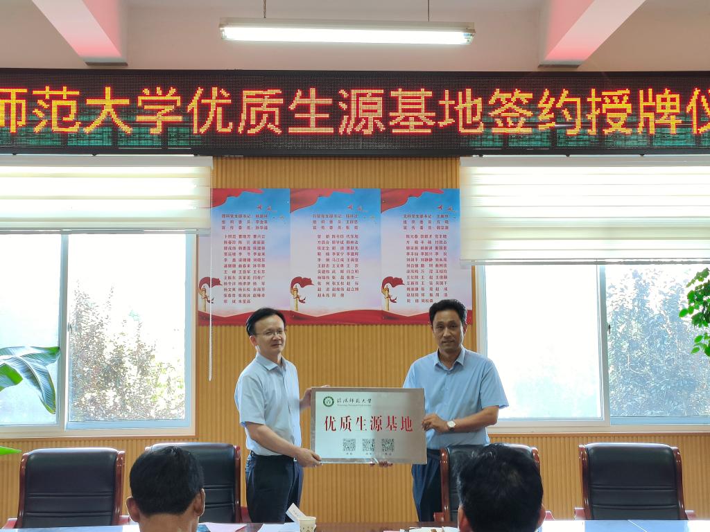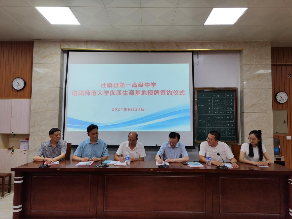 活动期间,tyc7111cc太阳成集团招生宣传团队先后抵达社旗县第一高级中学、唐河县文峰高中、唐河县友兰实验高中开展招生宣传工作。咨询现场,学院招生宣传团队以专业的素养和热情的态度,向考生和家长介绍学校的专业设置、师资力量、教学成果以及就业前景等方面的情况。针对考生和家长们关心的录取分数线、专业特色、培养方案等问题,老师们也进行了耐心细致地解答,并为考生们提供了个性化的报考建议。随后,我院分别与社旗县第一高级中学、唐河县文峰高中、唐河县友兰实验高中签订“信阳师范大学生源基地”协议书,并为三所学校授“信阳师范大学优质生源基地”牌匾。