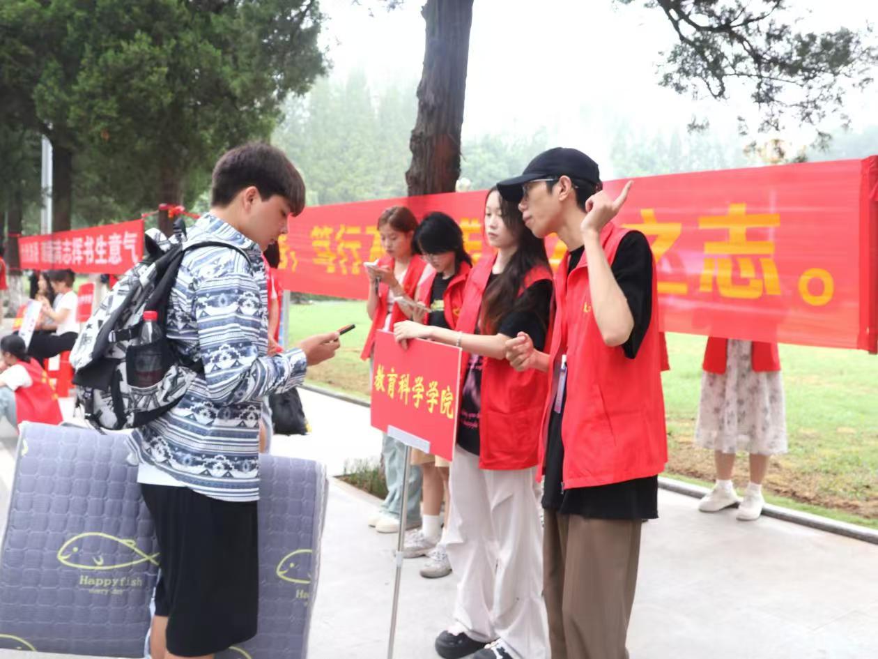 优化服务,以“心”迎新。学院设置8个值班点,组建专兼职辅导员、学生党员、学生干部三支迎新队伍,实现了一对一全覆盖、全方位、全过程的迎新服务;学院在迎新现场布置打卡墙,吸引新生和家长合影留念,现场气氛热烈;志愿者和老师们也始终保持着耐心和热情,认真解答新生和家长提出的各种问题,帮助新生尽快适应新环境。