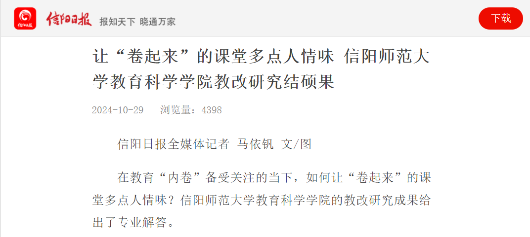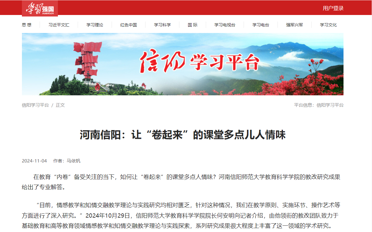 时间:2024-11-08 14:33:14 来源: 作者: 阅读: 次信阳师范大学tyc7111cc太阳成集团何安明教授领衔的教改团队取得了较为丰硕的教改研究成果,受到了多家权威媒体的关注与报道。近日,人民日报新媒体平台“人民号”、全国党媒信息公共平台、融合号“大河健康报”发布并转载了何安明教授教改团队的研究成果,信阳日报对此也进行了专访报道,且该稿件中央宣传部“学习强国”学习平台选用转载。