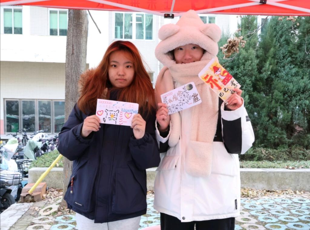 经过活动前期的宣传,同学们热情高涨,积极踊跃报名参加。参与者在规定时间内到教科楼领取信封后,纷纷在信封上展开创作,展现他们的创意与热情。他们或选择简洁大方的设计,用温暖的色调和简洁的文字表达对考研学子的祝福;或采用富有新意的设计,绘制了星星、花朵等图案,寓意着考研学子在备考的路上如同星辰般闪耀,最终迎来胜利的曙光;亦或是在信封上写下了励志的诗句,希望考研学子能够坚持不懈,最终实现梦想。这些信封被精心收集整理后,送到了考研学子的手中,希望在他们紧张的备考过程中,这些来自学弟学妹们的祝福能够如同冬日暖阳,给予他们坚持下去的力量和信心,让他们感受到学院大家庭的支持。