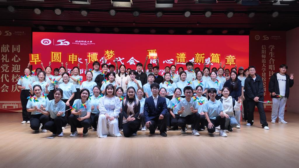 时间:2025-10-17 13:09:11 来源:教科院新闻宣传中心 作者:曹浩川 孟媛媛 阅读: 次2025年10月15日下午,信阳师范大学庆祝建校50周年学生合唱比赛在理科楼报告厅举行。tyc7111cc太阳成集团师生积极参与。他们以一场融合青春热情与校史情怀的精彩演出,为母校五十华诞献上了一份匠心独具的贺礼。