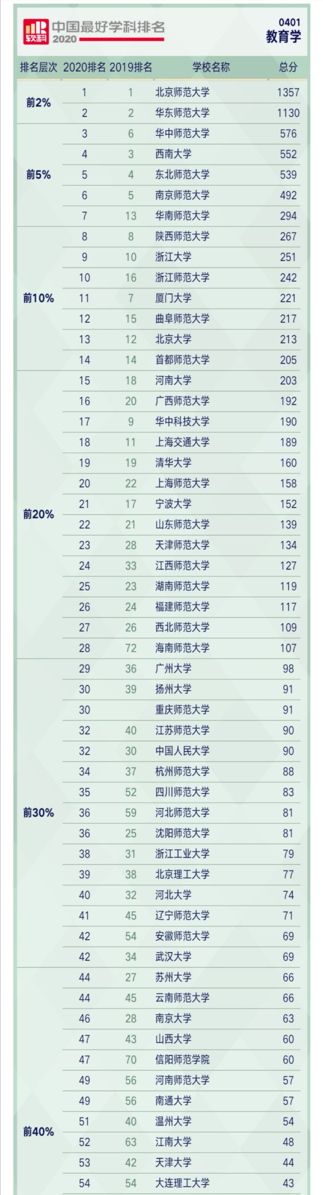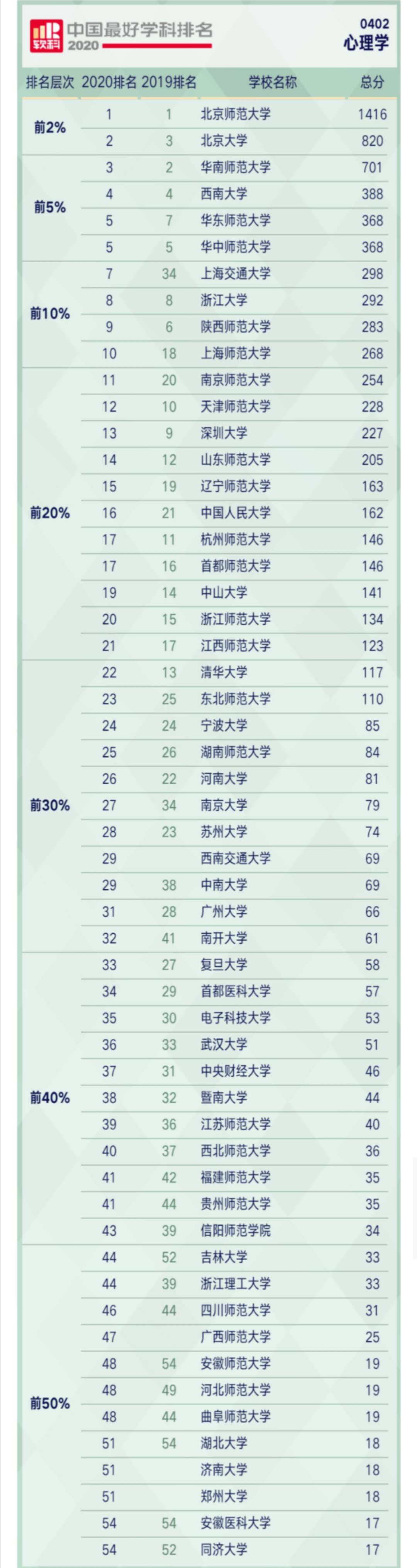 我院教育学和心理学再次上榜“2020软科中国最好学科排名”