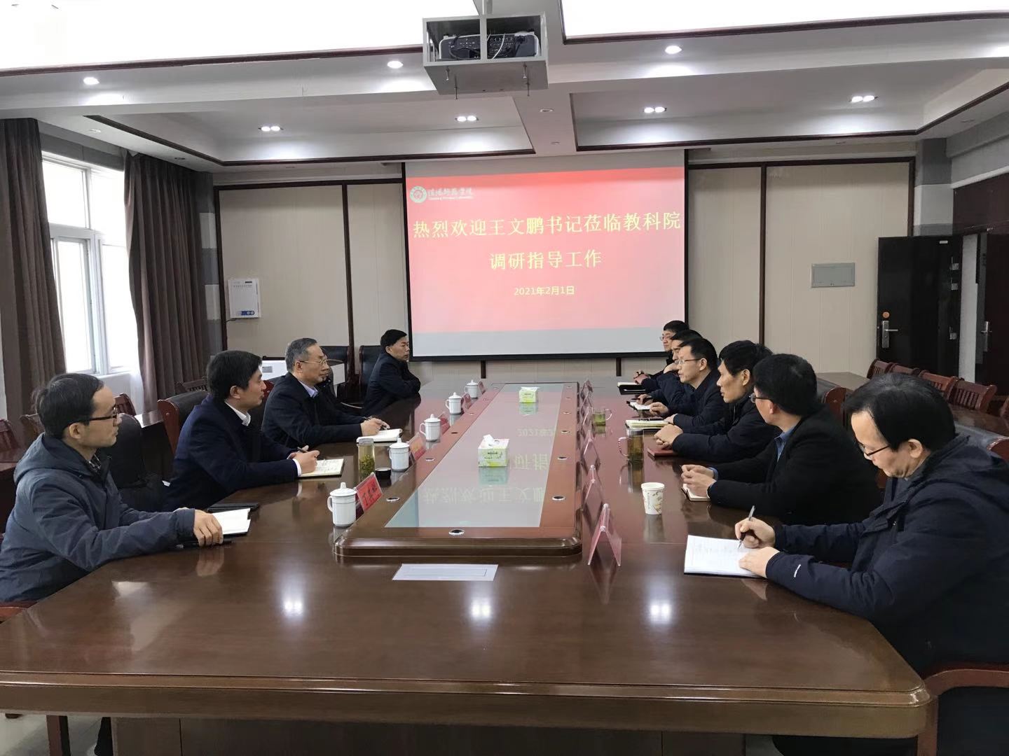 tyc7111cc太阳成集团党委书记李辉作了汇报,全面介绍了教科院现任领导班子情况、师资队伍现状、学科建设、人才培养、党建工作等综合情况。重点反思了学院发展中存在的问题及不足,比如班子不健全、学科带头人缺乏、高层次人才队伍建设困难、科研后劲不足、目前师资教学压力大、学科发展不平衡等,并针对存在的问题提出了十四五期间的努力方向。