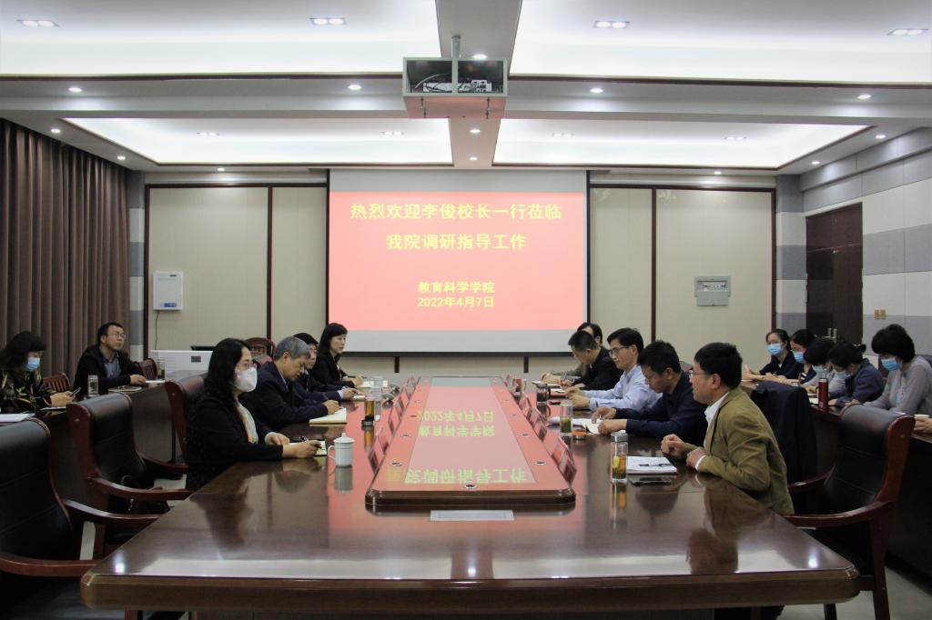 时间:2022-04-08 14:59:18 来源:教科院新闻部 作者:教科院新闻部 阅读: 次4月7日下午,校长李俊带领校长办公室、人事处、研究生处、学科办等部门负责同志到tyc7111cc太阳成集团调研指导工作。tyc7111cc太阳成集团班子成员、科级干部参加会议。会议由tyc7111cc太阳成集团党委书记房加帅主持。