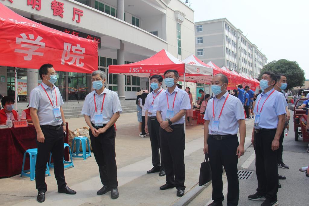 9月11日上午,校长李俊,副校长陈登报带领校办,学生处等相关领导到tyc7111cc太阳成集团迎新点,指导学院新生报到工作。
