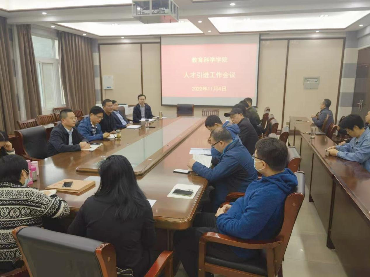 时间:2022-11-07 16:08:06 来源:教科院新闻部 作者:朱亚彤 郭鑫瑶 阅读: 次为扎实做好学院人才引进工作,11月4日,tyc7111cc太阳成集团在教科楼402会议室召开高层次人才引进专题会议。会议由院长何安明主持,院全体领导班子成员、博士和教研室主任出席此次会议。