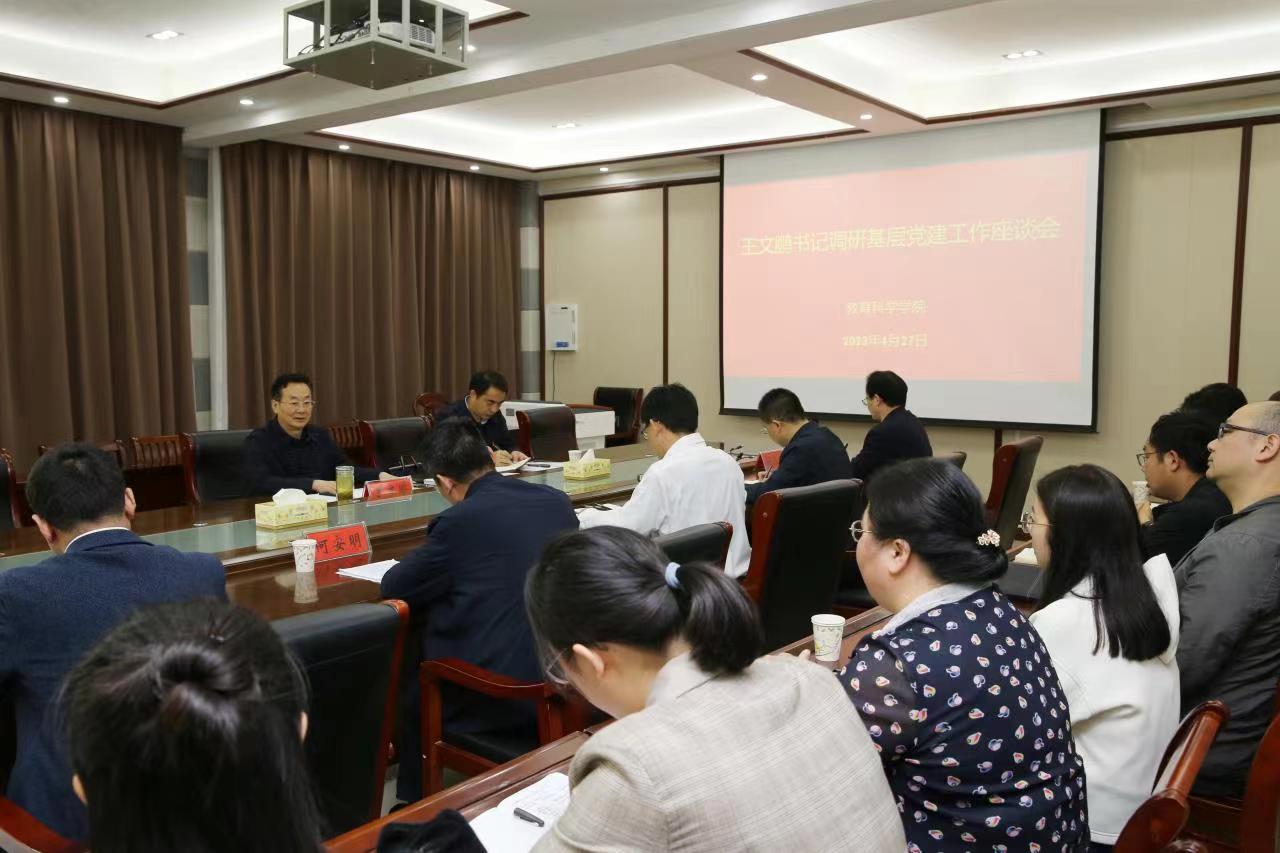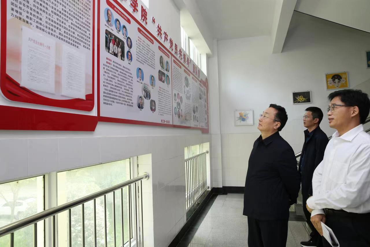 王文鹏实地查看了tyc7111cc太阳成集团的党建工作阵地、实验实训场地;随堂听取了李泽娟老师的《中学综合实践活动》课,详细了解课程思政开展情况;与tyc7111cc太阳成集团领导班子、党支部书记、学术带头人、教师代表进行了座谈交流。
