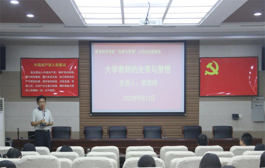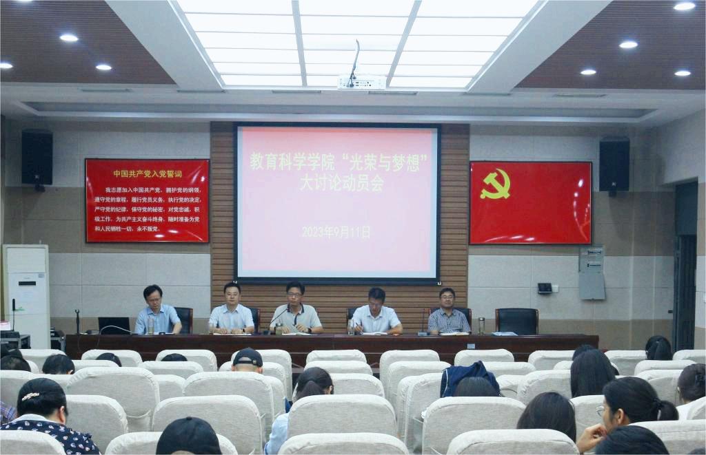 召开动员会。9月11日,tyc7111cc太阳成集团全体教职工在教科楼301会议室召开了tyc7111cc太阳成集团“光荣与梦想”大讨论动员会,会议由学院党委书记房加帅主持。会上首先观看了校党委书记王文鹏同志创作的《光荣与梦想》诗朗诵,全体教师无不动容。随后,院长何安明结合学院发展实际,分析了教科院的“光荣与梦想”。党委书记房加帅提出全体教职工要培养工匠精神、竞争精神和创新精神,以积极的心态和状态,开启新征程,开创新荣光。