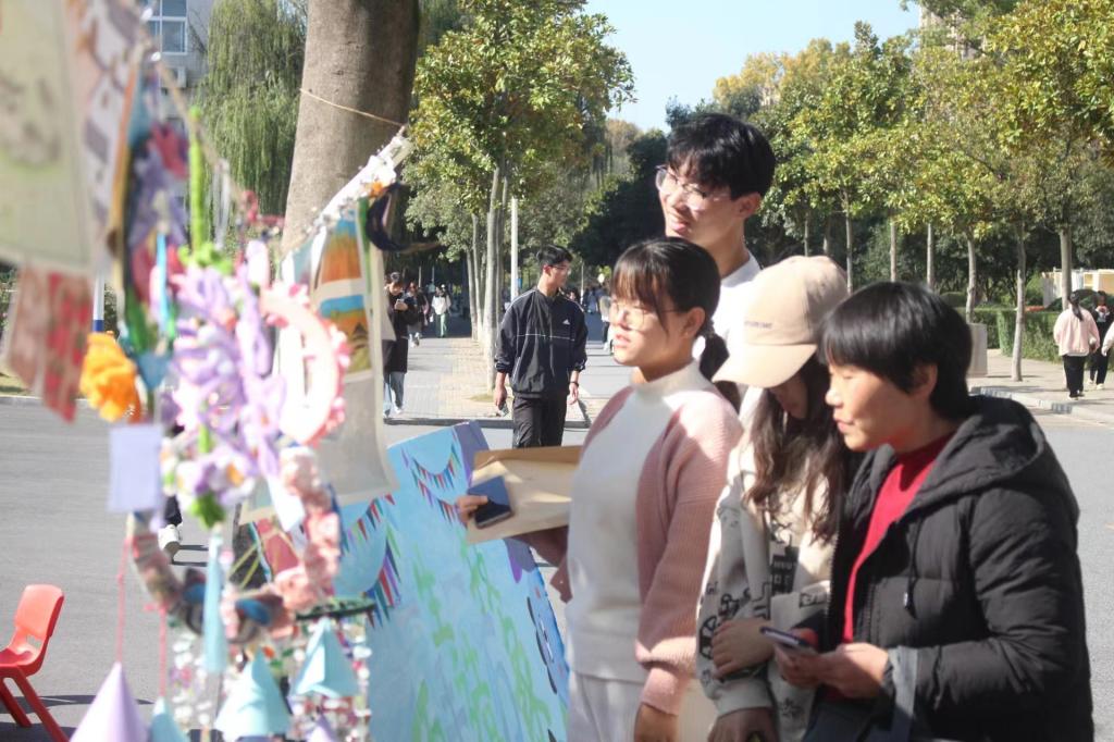 活动前期,朱欲晓老师组织工作人员召开会议,部署相关工作事宜。活动期间,参赛人员根据活动要求,采用折纸、卡纸、皱纹纸和粘土等材料进行创作,通过色彩的搭配、造型的选择和耐心的制作,尽情发挥自己的想象力,创作出了精美的作品,从中体会创作过程的趣味。作品制作完成后,经评委评选于心语广场进行展示。展示期间,栩栩如生的作品吸引着同学们和幼儿园的小朋友驻足观赏,让他们情不自禁地参与到活动中,利用现场准备的材料进行随心的创作。一件件别具匠心、富有童趣的创意作品在同学们和小朋友的手中诞生,现场弥漫着欢快的气氛。