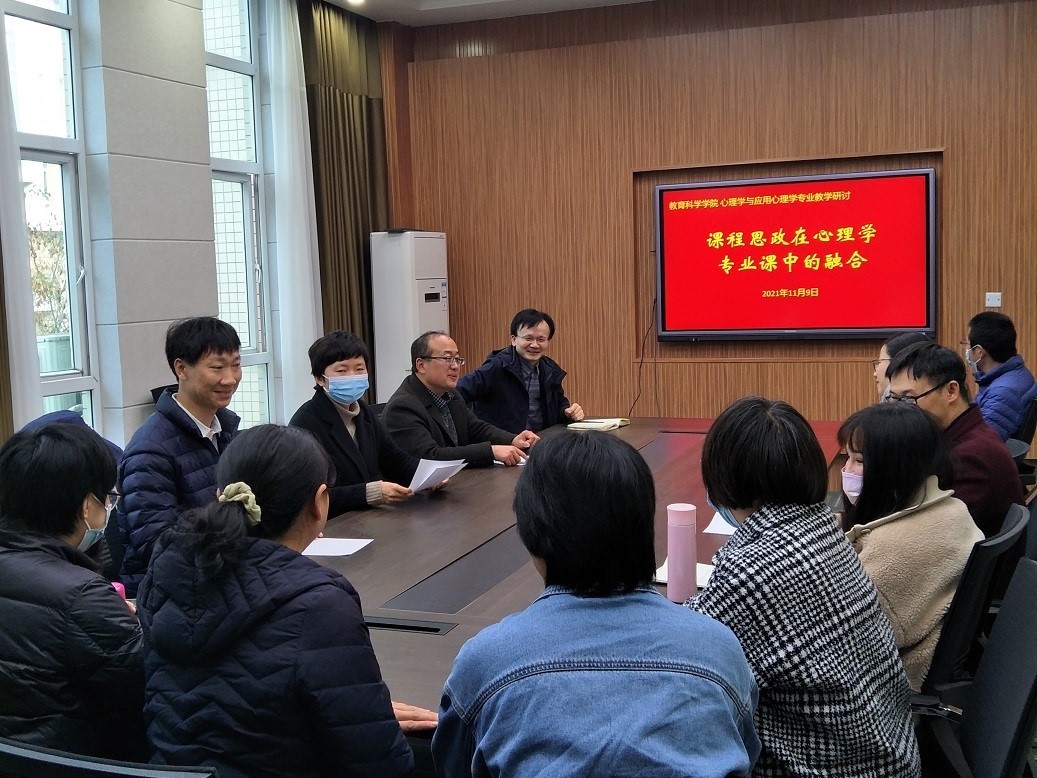 时间:2021-11-10 21:46:00 来源: 作者: 阅读: 次11月9日,tyc7111cc太阳成集团心理学与应用心理学专业教学研讨会在教科楼303会议室顺利举行,教研室在校全体教师参加此次会议,研讨会以“课程思政在心理学专业课中的融合”为主题。