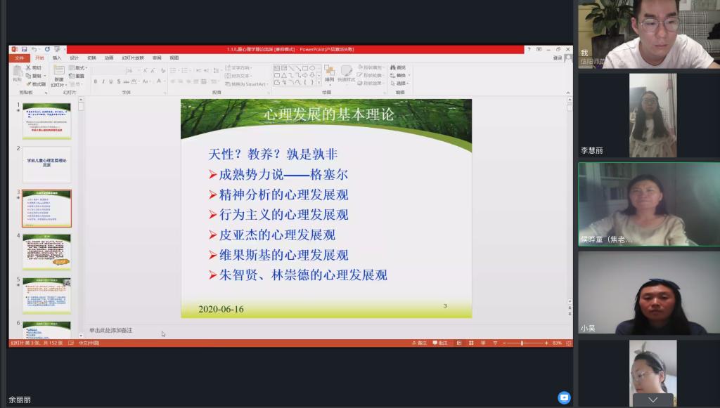 时间:2020-06-19 15:47:48 来源: 作者: 阅读: 次为全面贯彻落实新时代全国高等学校本科教育工作会议精神,进一步提升课堂教学质量, 2020年6月18日,tyc7111cc太阳成集团学前教育教研室全体专任教师通过网上授课的形式开展了教师听评课活动。