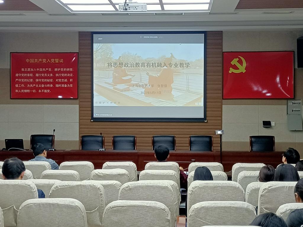 5月17日,tyc7111cc太阳成集团在教科楼分会场(301会议室)组织参加“将思想政治教育有机融入专业教学”线上课程思政建设报告会,听取上海中医药大学张智强教授的报告。院长何安明在学校主会场参加会议。院党委书记房加帅,副院长郭勇、孙天义及全体专业教师在教科楼分会场参加会议。报告会由副校长余本海主持。
